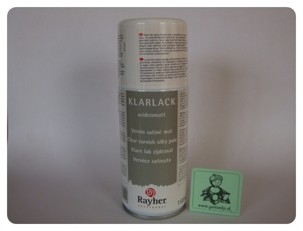 Dokončovací číry lak v spreji so zamatovým leskom, 150ml. Na syntetickej báze. Vďaka rovnomernému jemnému nástreku vytvára jemný ochranný film. Je rýchloschnúci a jeho najdôležitejšou vlastnosťou je, že nežltne!! Vďaka svojim skvelým vlastnostiam je ideálny napr. na prácu s papierom, na hladké plochy ako sklo, zrkadlá, kovy či keramika. Rovnako dobre sa uplatní aj na dreve, plastoch, koži a smelo ho môžete použiť na na polystyrén. Pri viacvrstvovom lakovaní nechajte každú vrstvu poriadne zaschnúť. Lakujte zo vzdialenosti 30cm. Povrch musí byť čistý a odmastený. Po použití dózu obráťte hore dnom a vystriekajte zbytok laku z vrchnáka, aby ste predišli zaschnutiu.