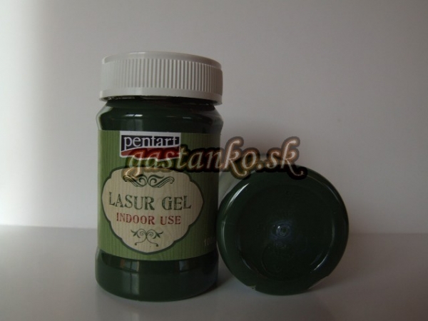 Praktická, ekologická (na vodnej báze) gélovitá lazúra vhodná na použitie v interiéri. Pomocou nej jednoduchým spôsobom dodáme dreveným predmetom farebný tón (bez toho, aby sa zakryla štruktúra dreva) a ochranu. Výborne a ľahko sa nanáša štetcom aj penovým štetcom. Jej vynikajúcou vlastnosťou je práve jej gélovitá konzistencia, ktorá umožňuje jej použitie v kombinácii so šablónami, čim získame skvelé dekoratívne efekty. Objem 100ml. Lazúra už sama osebe zabezpečuje drevu ochranu, preto nie je vyslovene nutné dekorovaný povrch ďalej lakovať.