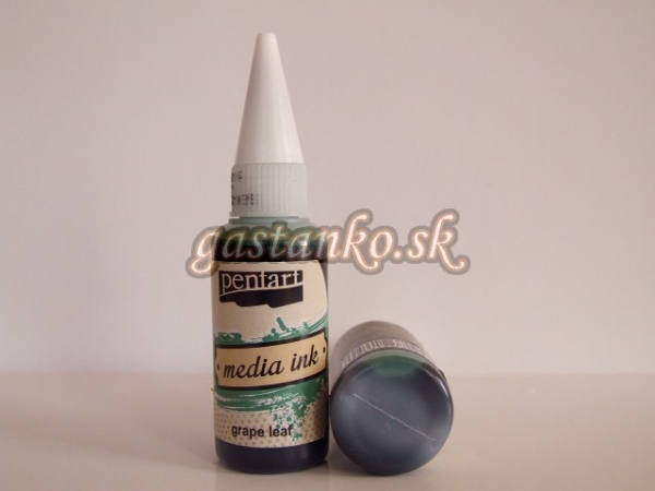 Media atrament. Rýchloschnúci priehľadný atrament na alkoholovej báze. Môžeme ho aplikovať na akýkoľvek povrch. Výborne sa hodí na scrapbooking a zmiešané techniky (mixed media). Na hladkom povrchu (sklo, kov, lesklý papier, plastová fólia, podkladová pasta) bude po uschnutí lesklý s výraznou jasnou farebnosťou. Na poréznom povrchu dosiahneme skôr pastelový odtieň s matným vzhľadom. Jednotlivé odtiene sú navzájom miešateľné. Na zosvetlenie odtieňov a ich vzájomné prechody používame Pentart riedidlo na media atrament. Media Ink neobsahuje kyseliny. Objem 20ml.