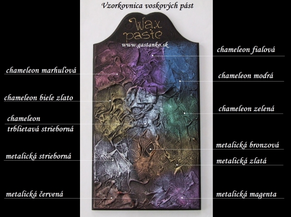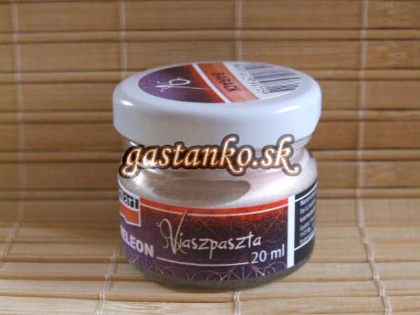 Pasta na báze včelieho vosku, s obsahom pomarančového oleja. Nanesením na celý dekorovaný povrch na ňom vytvorí perleťovo lesklý film s jemným farebným nádychom svojho odtieňa bez toho, aby výrazne zakryla farebnú vrstvu nanesenú pod ňu. Jej mimoriadne zaujímavé optické vlastnosti sa najefektnejšie uplatnia na tmavých povrchoch. Ešte krajší efekt dosiahnete nanesením na reliéfny povrch. Objem 20ml.