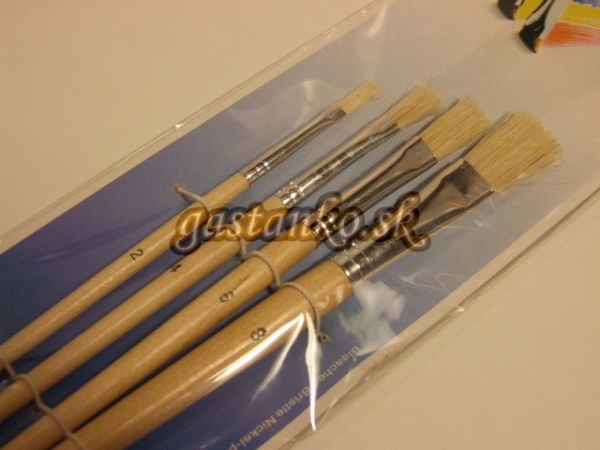 Ploché štetce z prírodných prasačích štetín. Balenie obsahuje 4 kusy štetcov vo veľkostiach od 2 do 8.