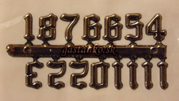 Čísla na hodiny. Arabské, staroanglický štýl. Antické zlaté, výška 16mm. Plastové, samolepiace, 3D.