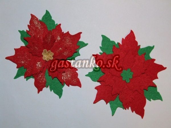 Zhotovte si vianočné ružičky! Na obrázku vľavo je inšpirácia: filcové dieliky vianočnej ruže v strede zošite. Striedok ozdobte napr. kontúrou alebo perlovým perom. Na lupienky naneste trošku glitrov. Z tohto balenia si viete zhotoviť dve vianočné ruže s priemerom ca.11cm.