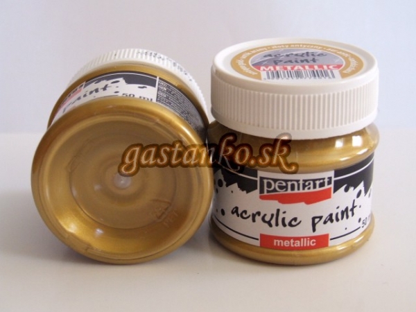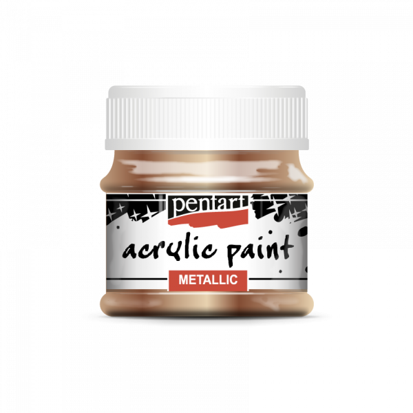 Akrylová farba 50ml s metalickým efektom. Univerzálna vodou riediteľná farba na drevo, kartón, keramiku a iné povrchy. Po uschnutí je vodeodolná a stálofarebná.