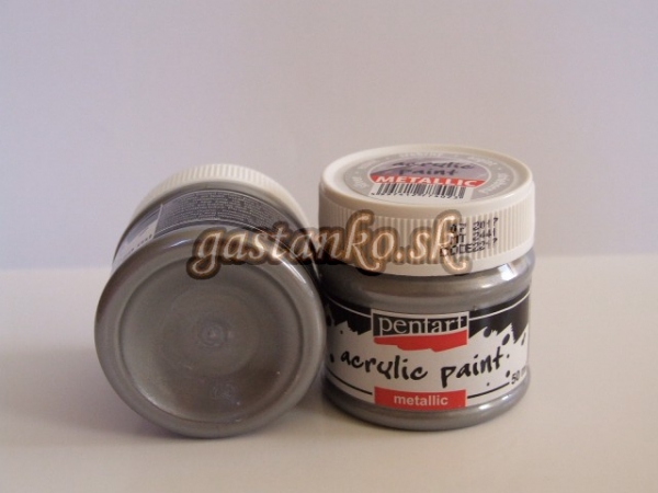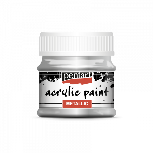 Akrylová farba 50ml s metalickým efektom. Univerzálna vodou riediteľná farba na drevo, kartón, keramiku a iné povrchy. Po uschnutí je vodeodolná a stálofarebná.