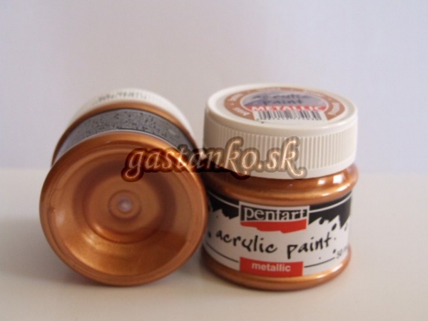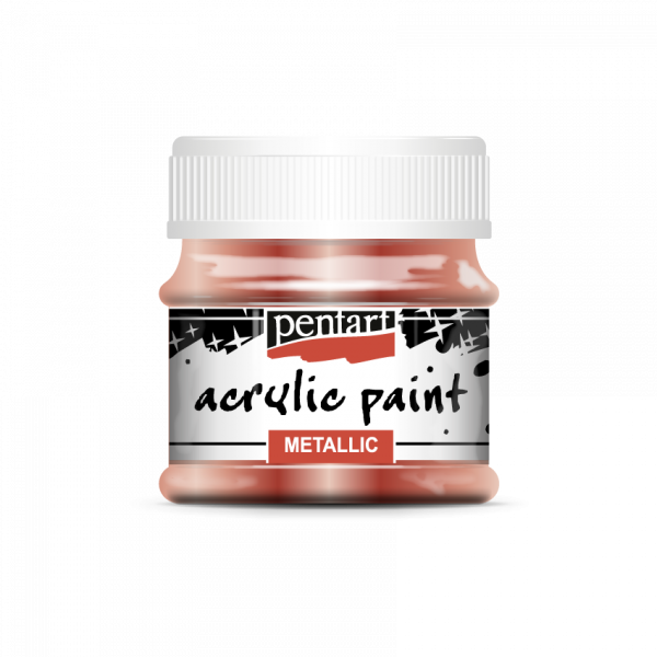 Akrylová farba s metalickým efektom. Univerzálna vodou riediteľná farba na drevo, kartón, keramiku a iné povrchy. Po uschnutí je vodeodolná a stálofarebná. 50ml.