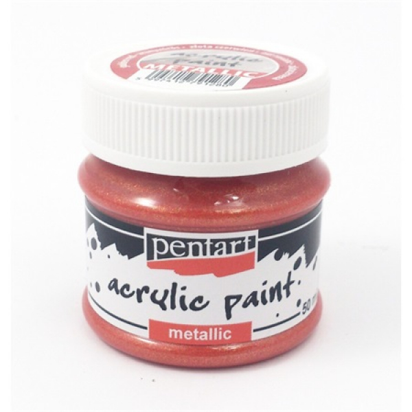 Akrylová farba 50ml s metalickým efektom. Univerzálna vodou riediteľná farba na drevo, kartón, keramiku a iné povrchy. Po uschnutí je vodeodolná a stálofarebná.