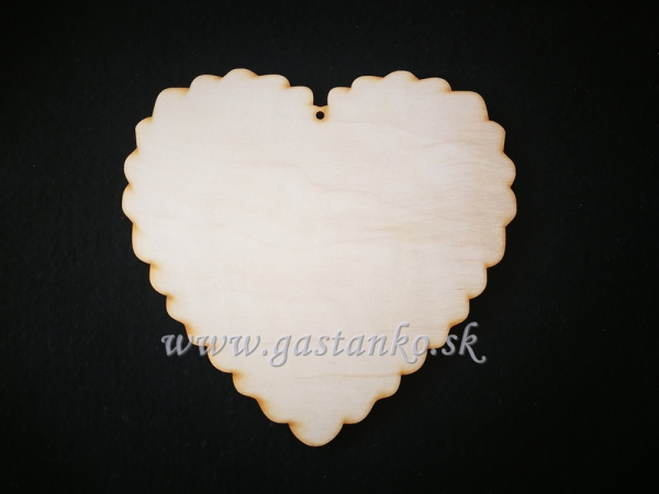 Drevené srdiečko s vlnkovaným okrajom (šírka 9cm, výška 8,5cm). Vyrobené z kvalitnej preglejky hr.3mm. S dierkou na zavesenie.