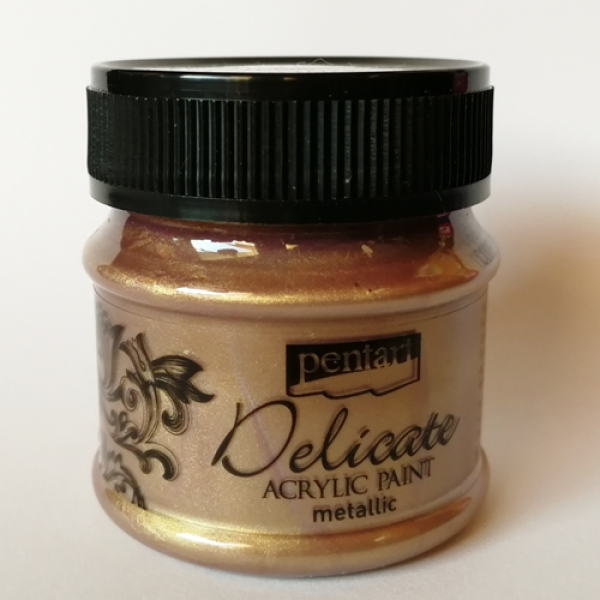 Metalická akrylová farba s decentným, hodvábne metalickým leskom. Obsahuje zvláštny druh pigmentu, ktorý jej dodáva skutočnú eleganciu. Objem 50ml. Farba má výbornú kryciu schopnosť a je vhodná na rôzne povrchy: drevo, kartón, plast, kov, polystyrén, kameň,... Na vodnej báze, po uschnutí vodeodolná, netoxická.