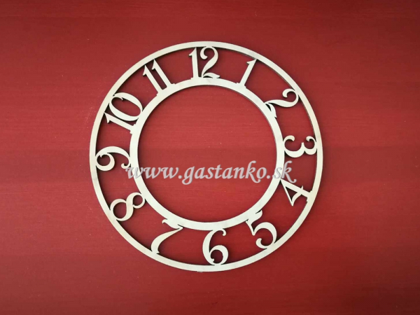 Číselný kruh na hodiny s arabskými číslicami. Kruh má vonkajší priemer 200mm. Laserový výrez vyrobený z kvalitnej preglejky hr.3mm.