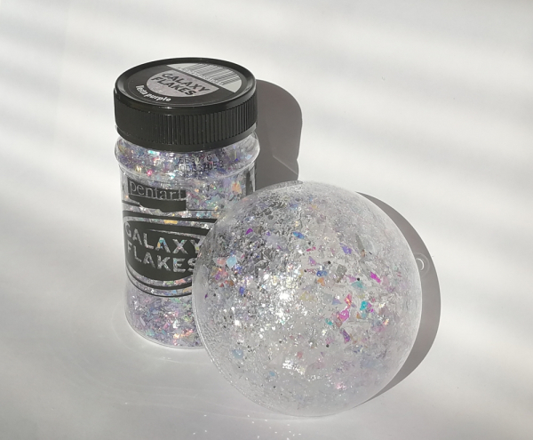 * Jednoducho len vsypte zopár fliačkov do akrylovej gule či medailónu. Farby môžete navzájom smelo miešať!