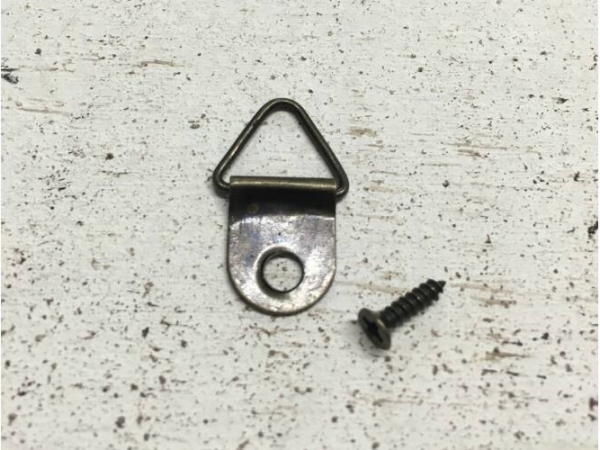 Kovový háčik na zavesenie obrazov a obrázkov. Farba antik bronz. Celková dľžka 12mm. Cena je vrátane skrutky..