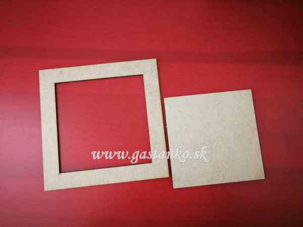 * doštičku v tvare rámčeka s rozmermi 155x155mm a šírkou orámovania 20mm (vnútorný otvor 115x115mm). Môžete ju použiť napríklad ako "tuning" na krabičku. Ako na to? Na vrchnák krabičky prilepte motív z ryžového papiera tak, aby ho neskôr bolo vidieť cez vnútorný štvorcový otvor rámčeka. Rámček pomaľujte, patinujte a ozdobte podľa svojej fantázie a potom ho prilepte na vrchnák krabičky.