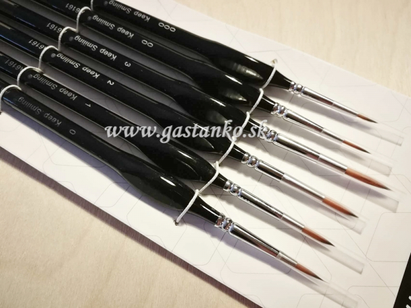Kvalitné profesionálne ihličkové štetce s dlhými jemnými syntetickými štetinkami. Výborné na tvorbu jemných a dlhých liniek, detailov, ornamentov, písmen a pod. ergonomicky tvarovaná rúčka zabezpečí, aby sa Vám pri precíznej detailnej práci rýchlo neunavila ruka. Set obsahuje 6 štetcov, z každej veľkosti po jednom kuse: 000/00/0/1/2/3