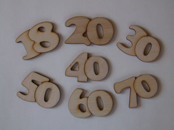 Drevené číslo k životnému výročiu. Výška 45mm. Laserový výrez vyrobený z kvalitnej preglejky hr.3mm.