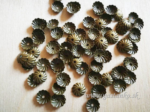 Kovové ozdobné kaplíky, pevné - farba mosadzná.  Priemer 8mm. Obsah balenia: 20ks.