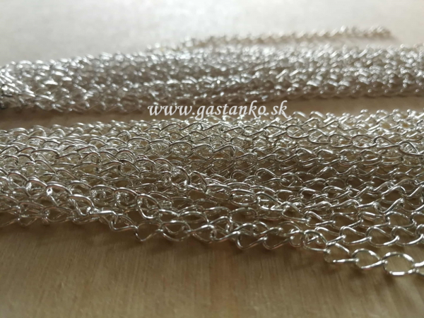 Kovová ozdobná retiazka - farba svetlostrieborná. Dľžka = cca. 1meter +/-1cm. Šírka cca. 2,5-3mm.