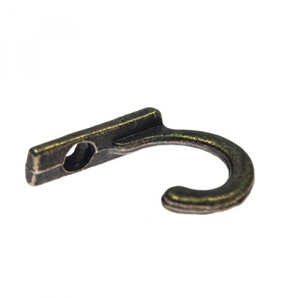 Kovový háčik vhodný na upevnenie do dreva. Vhodný na výrobu vešiačikov do domácnosti či na chalupu, určených na zavesenie ľahších vecí: napríklad utierok, chňapiek, grilovacieho náradia, kuchynského náradia, školských vrecúšok, detských drobností, menšieho náradia pre kutilov a pod. Farba antik bronz. Výška 26mm. Plus 1 samorezná skrutka.