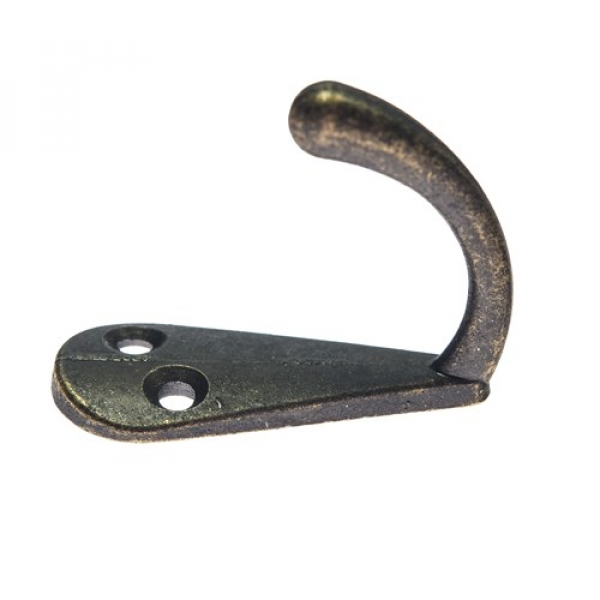 Kovový háčik vhodný na upevnenie do dreva. Vhodný na výrobu vešiačikov do domácnosti či na chalupu, určených na zavesenie ľahších vecí: napríklad utierok, chňapiek, grilovacieho náradia, kuchynského náradia, školských vrecúšok, detských drobností, menšieho náradia pre kutilov a pod. Farba antik bronz. Výška 35mm. Plus 2 samorezné skrutky.