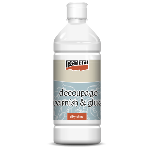 Lepidlo a lak v jednom na decoupage aplikovanú na drevo, kartón, sadru, terakotu a podobné porézne materiály. Vodou riediteľné, po uschnutí vode odolné. S hodvábnym leskom. Veľké 500ml balenie.