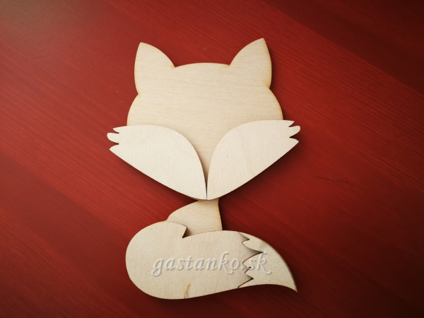 Drevený laserový výrez - milá líštička skladajúca z viacerých dielikov, ktoré treba vzájomne na seba navrstviť. Líštička sa veľmi pekne vyníma ako samostatná dekorácia, ale aj ako súčasť aranžmánov, vencov a pod. Vyrobená z kvalitnej preglejky hr.3mm. Rozmery: 90x120mm.