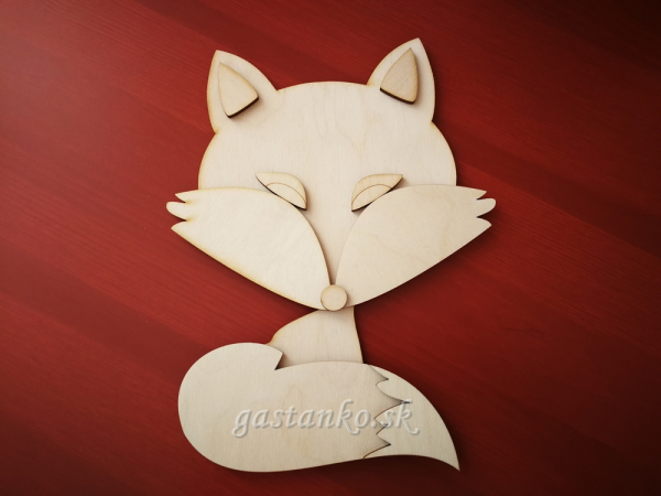 Drevený laserový výrez - milá líštička skladajúca z viacerých dielikov, ktoré treba vzájomne na seba navrstviť. Líštička sa veľmi pekne vyníma ako samostatná dekorácia, ale aj ako súčasť aranžmánov, vencov a pod. Vyrobená z kvalitnej preglejky hr.3mm. Rozmery: 113x150mm.