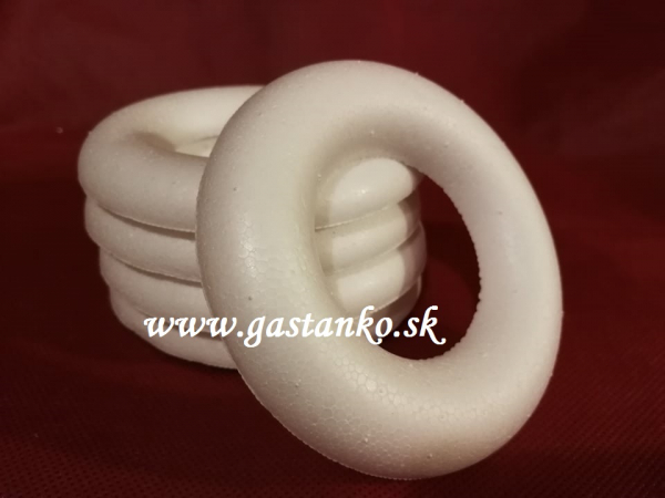 Polystyrénový venček. Vonkajší priemer 10cm. Polovičný = spredu plastický, zo zadnej strany plochý. Okrem iného sa tento venček hodí ako stojanček pod kraslice alebo ozdobné gule. Cena za 1kus.