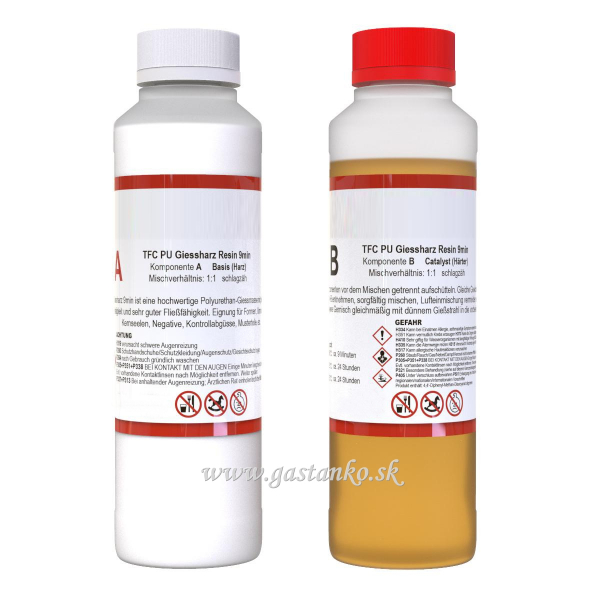 Polyuretánová odlievacia živica. Tekutá syntetická živica na výrobu odliatkov s tvrdosťou Shore D 75.