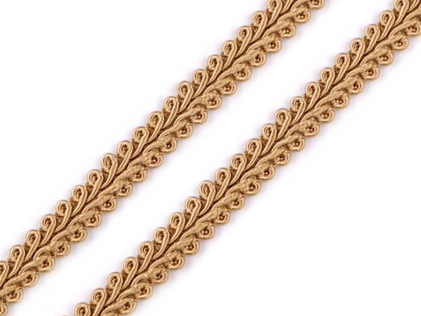 Krásny ozdobný prámik s tradičným elegantným vzorom a pekným leskom, šírka 8mm. Dľžka=ca.1m. Zloženie BA+VIS. Veľmi efektný dekoratívny doplnok napr. k decoupage technike, neodmysliteľný v mixed media či scrapbookingu.