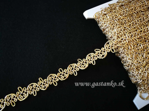 Prekrásny ozdobný prámik s elegantným vzorom a pekným leskom, šírka 20mm. Dľžka=ca.1m. Zloženie BA+VIS. Veľmi efektný dekoratívny doplnok napr. k decoupage technike, neodmysliteľný v mixed media či scrapbookingu.