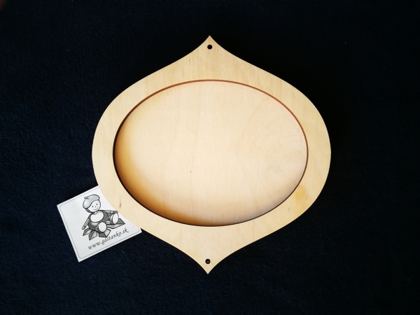 Drevená doštička plus ozdobný rámček elegantného tvaru. Doštička a rámček sú zvlášť, treba ich zlepiť po ozdobení. S dierkami na zavesenie. Vyrobený z kvalitnej preglejky - doštička hr.3mm, rámček je hrubý 6mm. Rozmery:20x20cm.