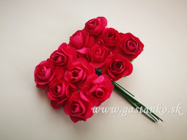 Kytička nádherných papierových ružičiek s priemerom hlavičky 20mm. Stopky sú z formovateľného zeleného drôtika. Nežný dekoratívny prvok ideálny na dotvorenie dekorovaného predmetu prilepením alebo upevnením naňho (krabičku, album, zošit, koláž,...). Pôvodnú farbu kvietka môžete prifarbiť resp.upraviť pomocou Media Mist spraya alebo Media Inku. Cena za 12ks kvietkov.
