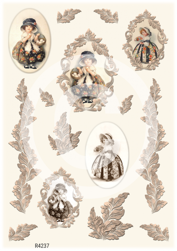 RP Vintage spring - dievčatká a ornamenty v béžovom