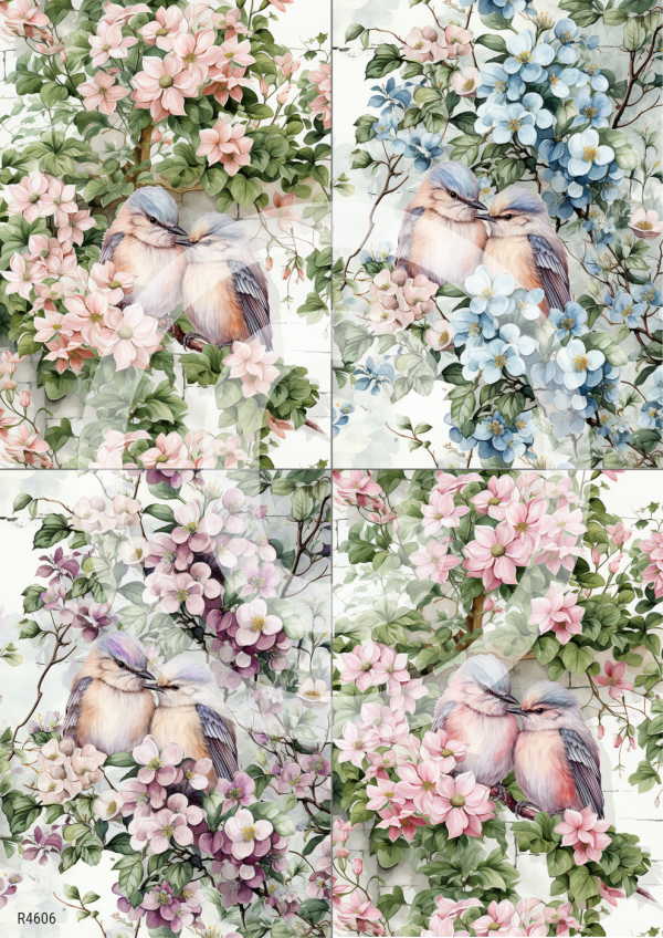 RP Vtáčiky - 4 páry na kvitnúcich kríkochRP Vtáčiky - 4 páry na kvitnúcich kríkoch