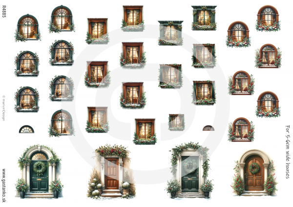 RP Zimná diorama - hnedé a zelené okná a dvere domčekov menšie