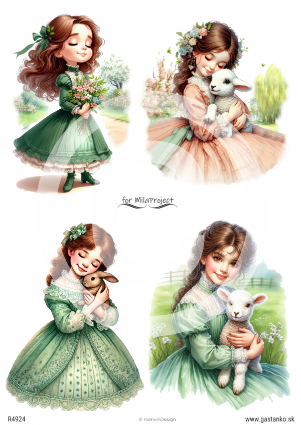 RP Viktoriánska jar - 4 dievčence so zvieratkami a kvetmi 11cm