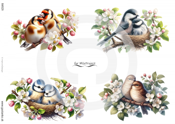 RP Jarné vtáčiky - 4 páriky na zakvitnutej jabloni