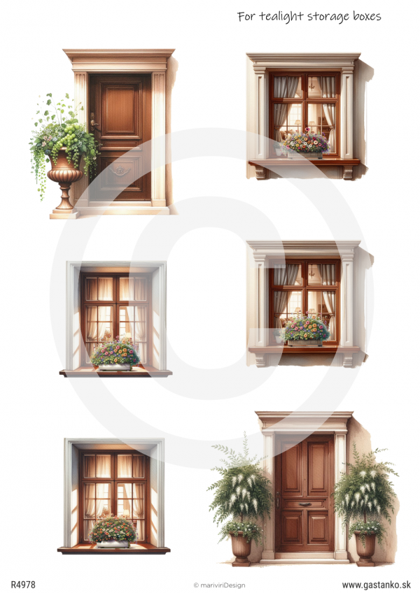 RP Diorama - elegantné okná a dvere s kvetmi hnedé
