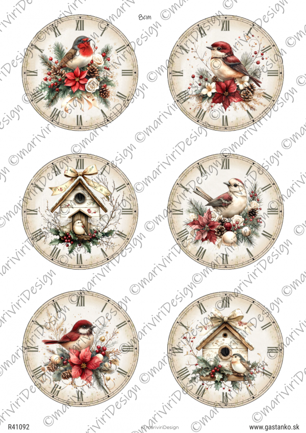 RP Slávnostný čas - hodiny 8cm s vtáčikmi