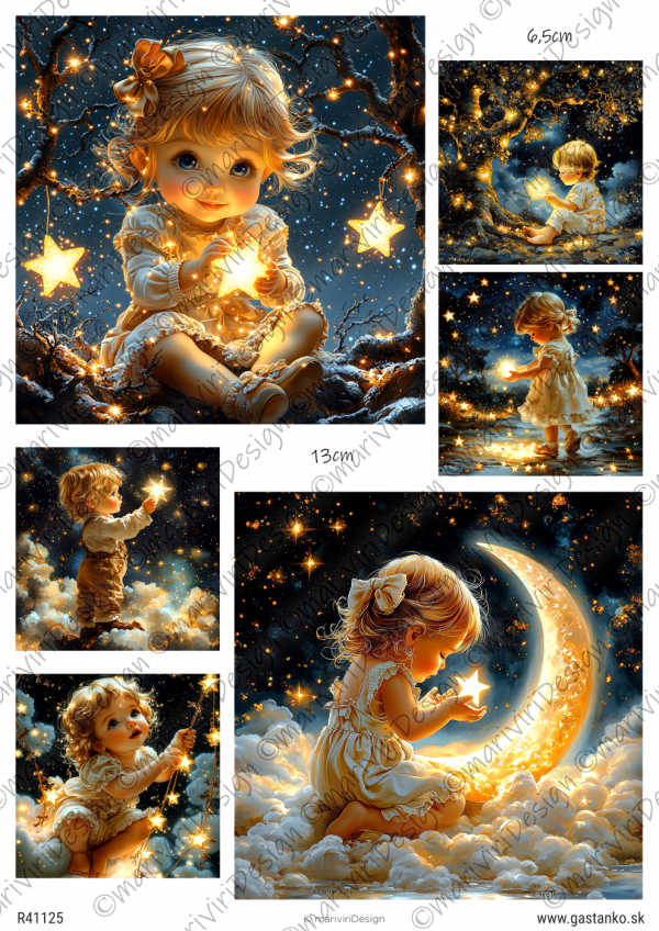 RP Čaro hviezd - blonďavé detičky - štvorce 13cm
