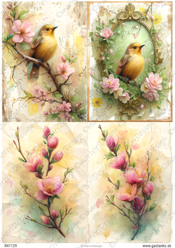 RP Kvitnúca jar - vtáčiky a halúzky čerešne