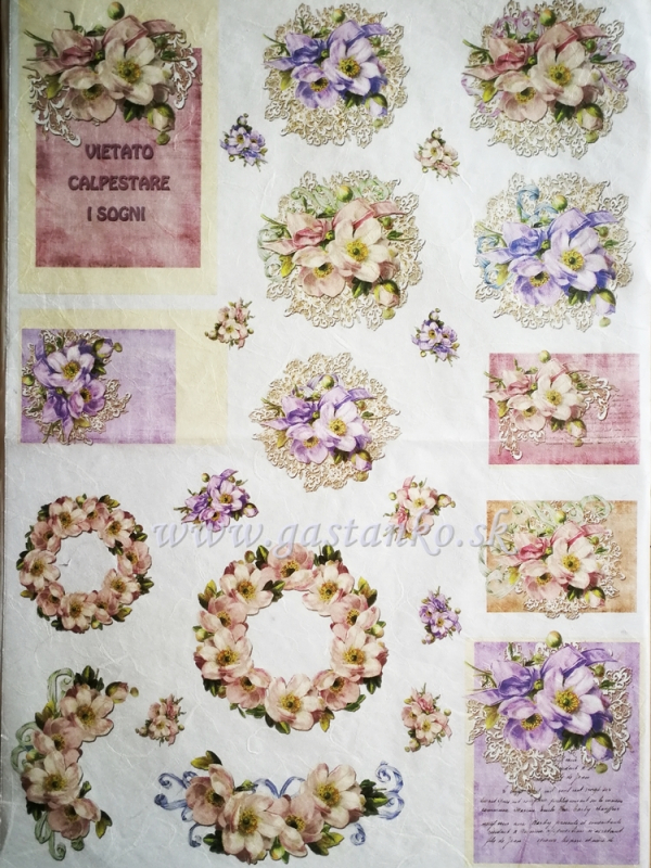 Ryžový papier 35x50cm. Krásne nežné motívy a nádherné farby.