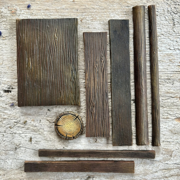 Rozmery hotových motívov: veľká doska 75x54x6mm, navjäčšie poleno 122x8x4mm, priemer plátku 25mm