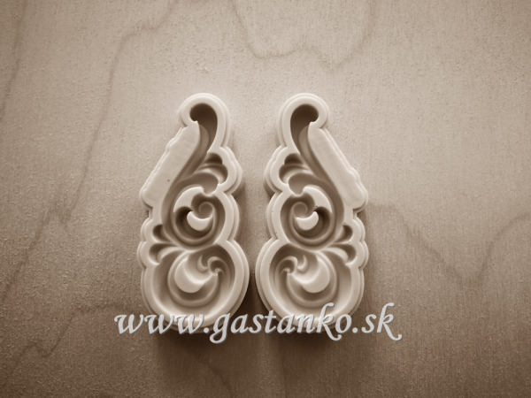 Rozmery hotového motívu: dľžka 57mm Set 2 foriem s ornamentmi, ktoré sú vzájomne v zrkadlovom obraze