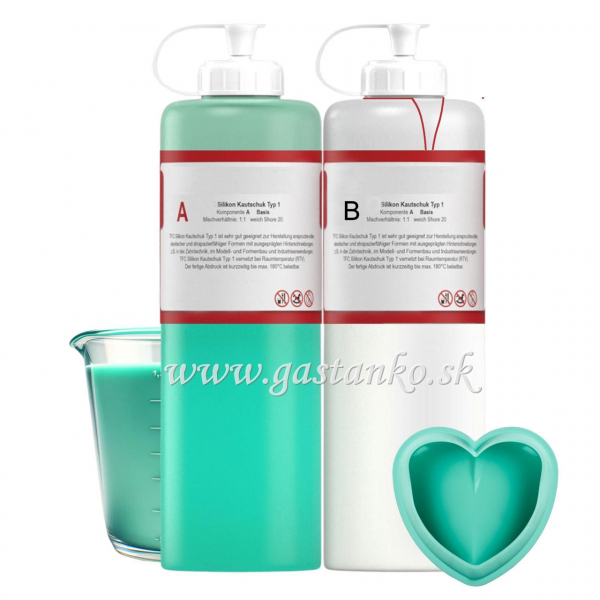 Tekutý silikónový kaučuk špičkovej kvality (2-zložkový) na výrobu silikónových odlievacích foriem. Objem: 2x500g.