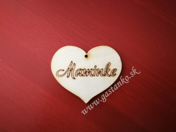 Drevené srdiečko s nápisom - laserový výrez. Šírka srdiečka: 6cm