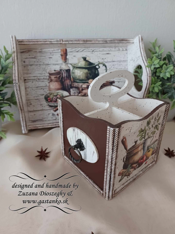Rozmery: 13x13cm, hľbka priečinkov 12,5cm, výška vrátane úchytu: 17,5cm. Hrúbka materiálu :6mm kvalitná preglejka. Tento produkt sme pre vás navrhli my. Skombinujte si ho s naším vareškárom v rovnakom štýle :)