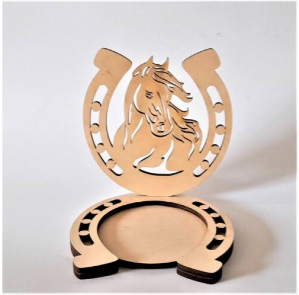 Krásny elegantný drevený svietnik nielen pre milovníkov koní. Vyrobený z kvalitnej preglejky hr.5mm. Rozmery: 15x15x15cm.