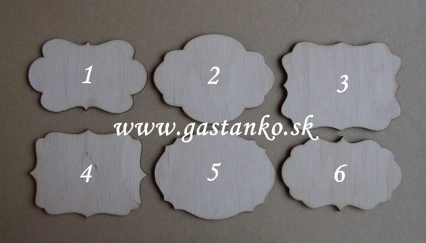 Drevená ozdobná tabuľka (model č.1 na obrázku) - laserový výrez. Cena za 1kus. Rozmery: ca.80x50mm. Vyrobená z preglejky.