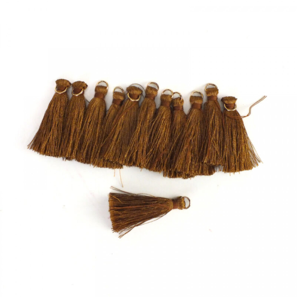 Textilný strapček zhotovený z krásnych lesklých padavých vlákienok. S malým kovovým krúžkom na zavesenie. Strapčeky môžete použiť ako efektný doplnok pri zdobení šperkovníc a krabičiek, vianočných ozdôb a kraslíc,.... S obľubou sa používajú pri výrobe bižutérie. Cena za 12kusov. Dľžka cca 40mm.